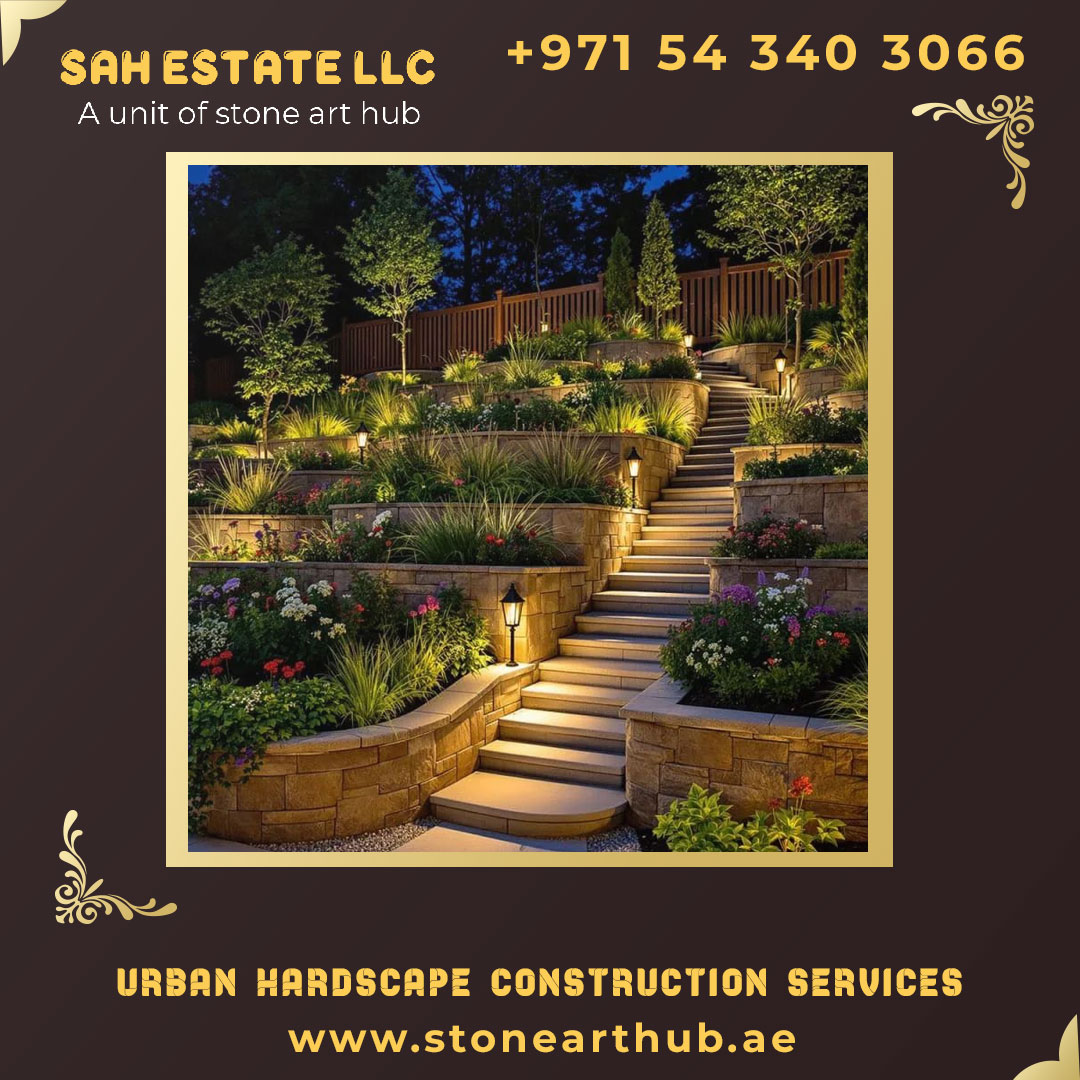 SAH ESTATE LLC specializes in Custom Hardscape Construction Services Abu Dhabi, offering personalized outdoor designs that match your style and property layout. We create one-of-a-kind features such as patios, decks, and pathways using materials and finishes tailored to your specific vision.