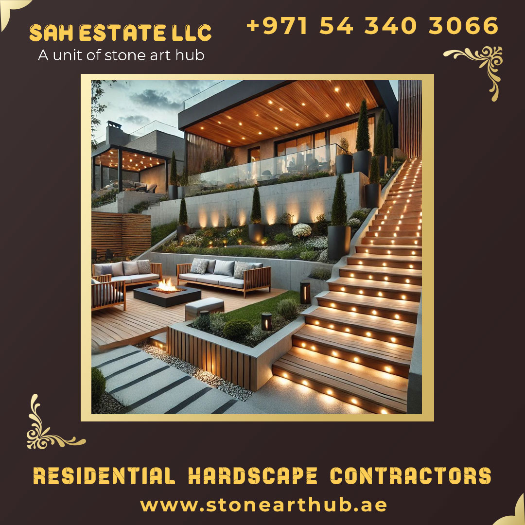 We are leading Residential Hardscape Contractors for Driveways in Dubai, creating durable and attractive driveways using interlock pavers, stamped concrete, or cobblestones. We also design elegant walkways and garden paths to improve curb appeal and make your outdoor space more inviting.