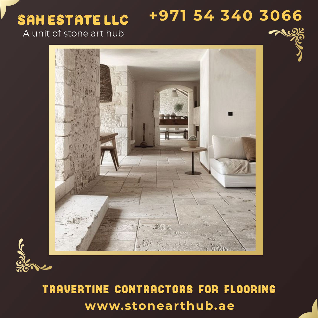 Premium travertine flooring solutions delivering durability, elegance, and precise installation for residential and commercial interiors across Abu Dhabi.
